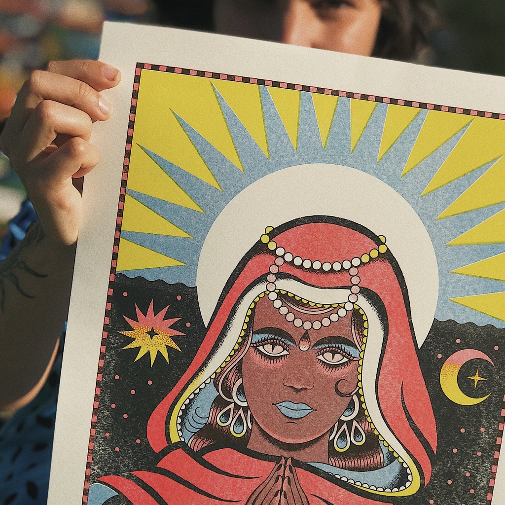 Risografia; 4 cores; papel Markatto Edition 200g/ 43x31cm / Impressão por Entrecampo 2022